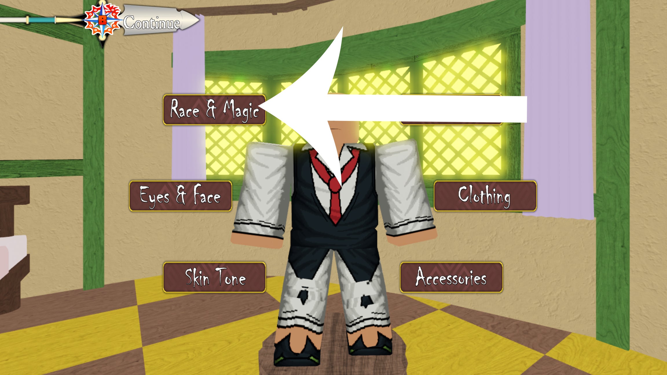 Image credit: Roblox, Deadly Sins Retribution - On the character customisation screen select the 'Race & Magic' option.