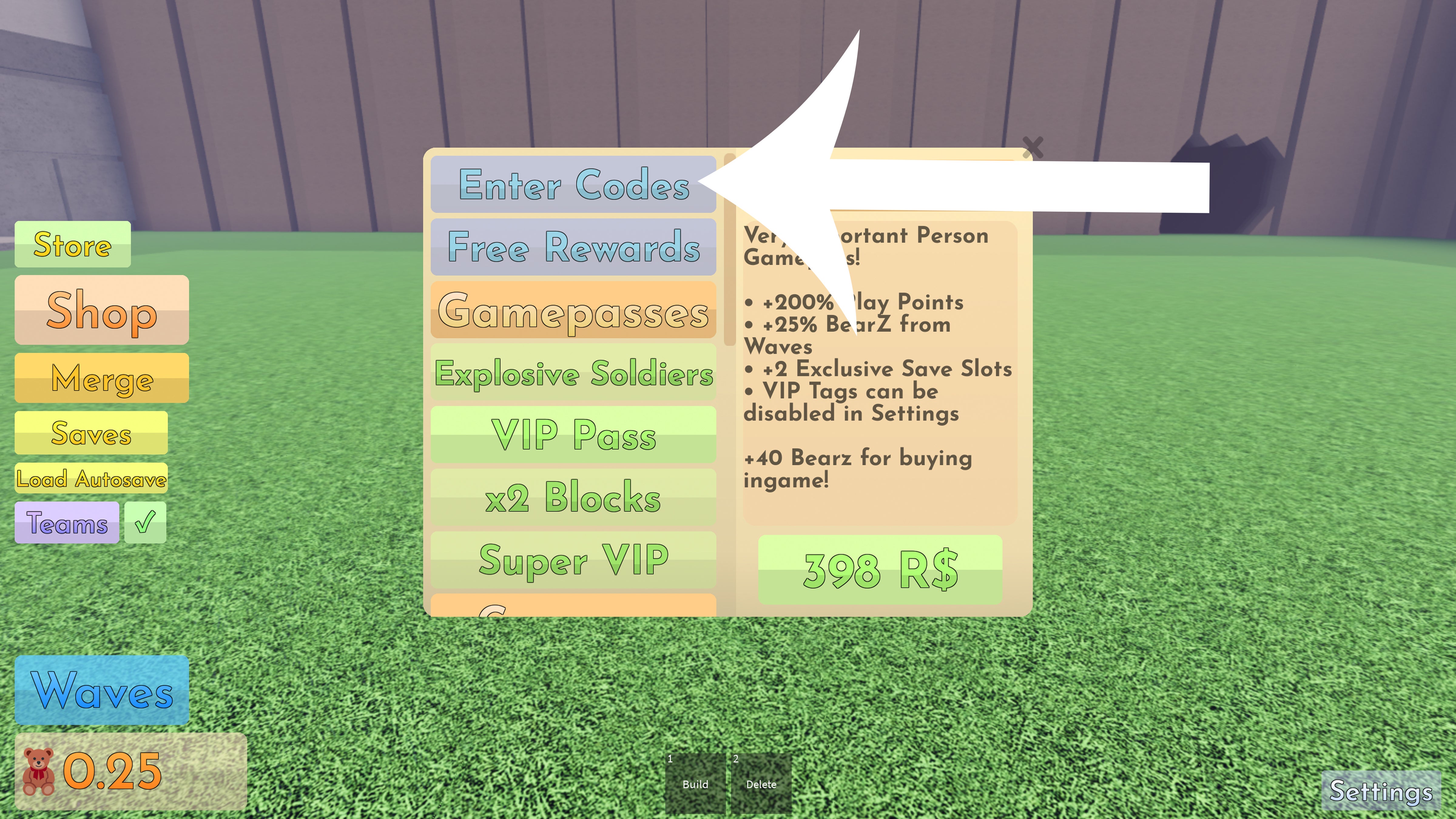This is how you could redeem codes in Toy SoldierZ, when the code function was previously available: